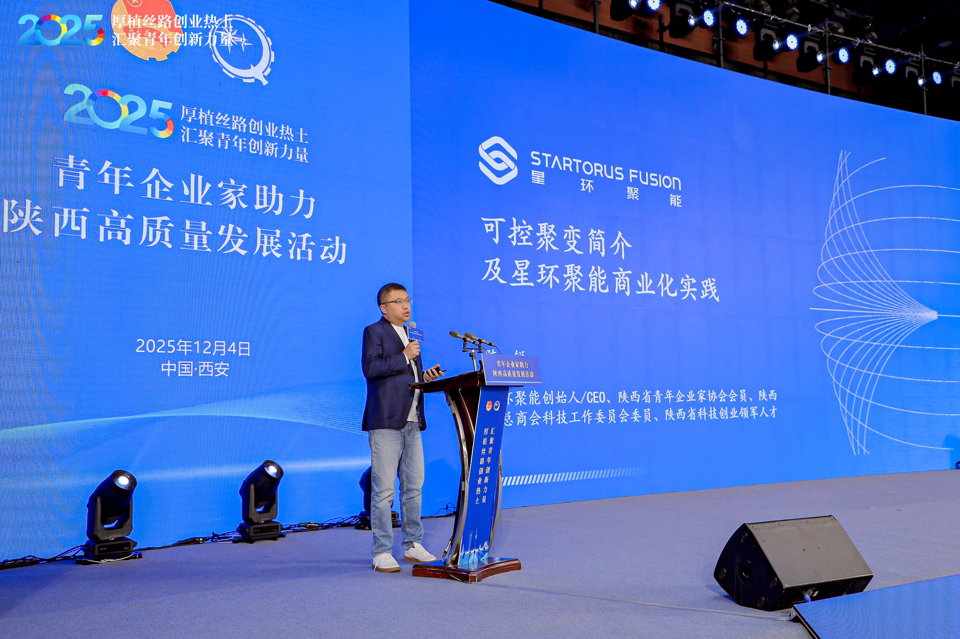 12月4日,由中国青年企业家协会、共青团陕西省委共同主办的“2025全国青年企业家助力陕西高质量发展活动”在西安成功举办。本次活动以“厚植丝路创业热土,汇聚青年创新力量”为主题,旨在搭建青年企业家交流合作、共谋发展的平台,凝聚青年创新创造力量助力陕西高质量发展。星环聚能CEO,西安星环执行董事、总经理陈锐作为青年企业家代表受邀出席,并在交流发言环节分享了公司在可控核聚变领域的商业化探索与实践。